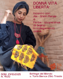 Gli ultimi aggiornamenti senza confini: Donna Vita Libertà: Incontro con Ala, Fariba e le donne di GojinoDicembre 11, 2025 Presidio di Pace verso la giornata mondiale dell’infanziaOttobre 28, 2025 Agricoltura sostenibile in PalestinaOttobre 15, 2025 Filiere etiche e vegane: presentazione del progetto +minoOttobre 1, 2025 CAMPAGNA PALESTINASettembre 18, 2025 Invito – Dove va la democrazia?Settembre 2, 2025 Leggi tutti gli articoli Iscriviti alla newsletter Unisciti a noi!