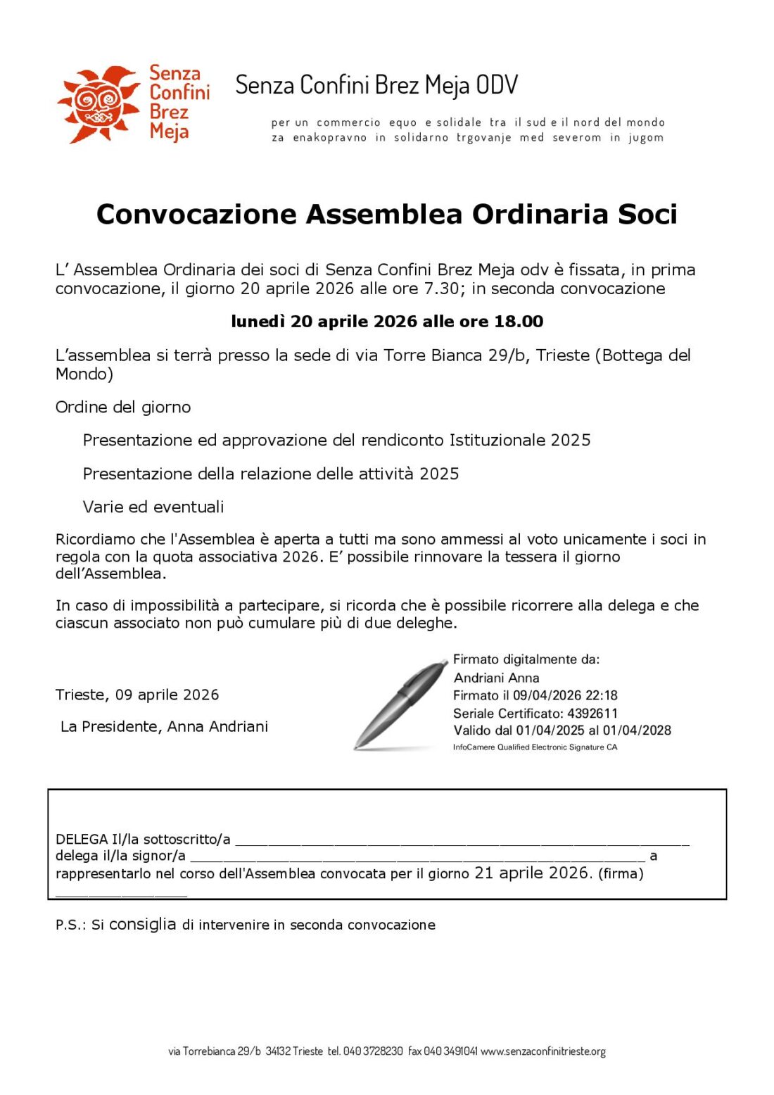 Assemblea ordinaria dei soci di Senza Confini Brez Meja ODV